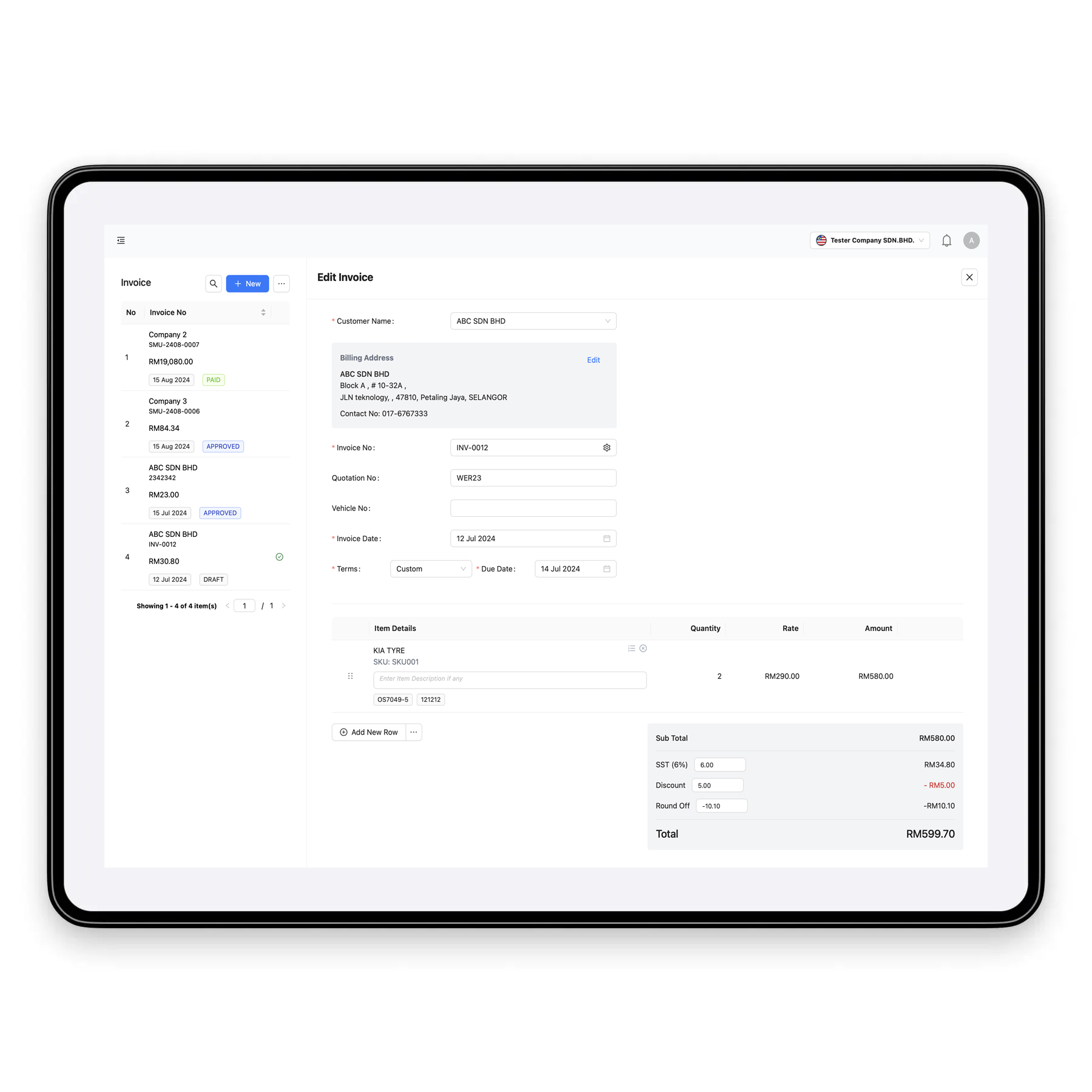 - Status Tracking: Monitor the status of your invoices, from creation to payment.